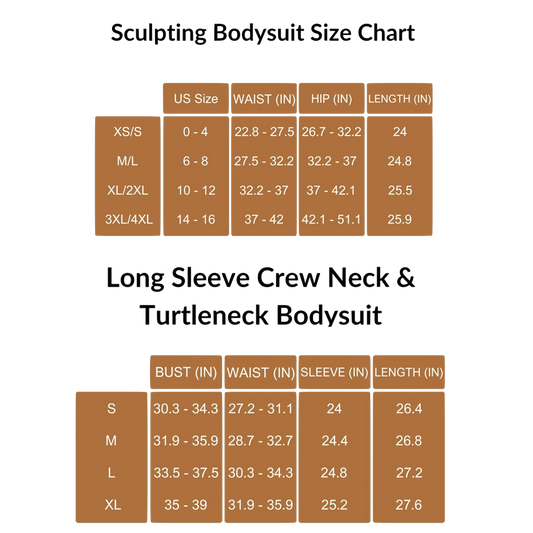 SCULPTING BODYSUIT SIZING CHART