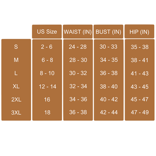 Use our size chart to ensure a perfect fit. Important: If you're between sizes we suggest sizing down if you prefer a tighter snatched look.Worried you'll order the wrong size? We got you covered. If you order the wrong size, please reach out to us by email and we'll ship out a replacement in the correct size for free!